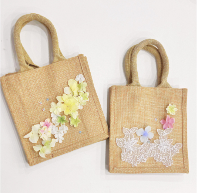 ドレス素材を使いオリジナルのジュートバッグを作ります。
