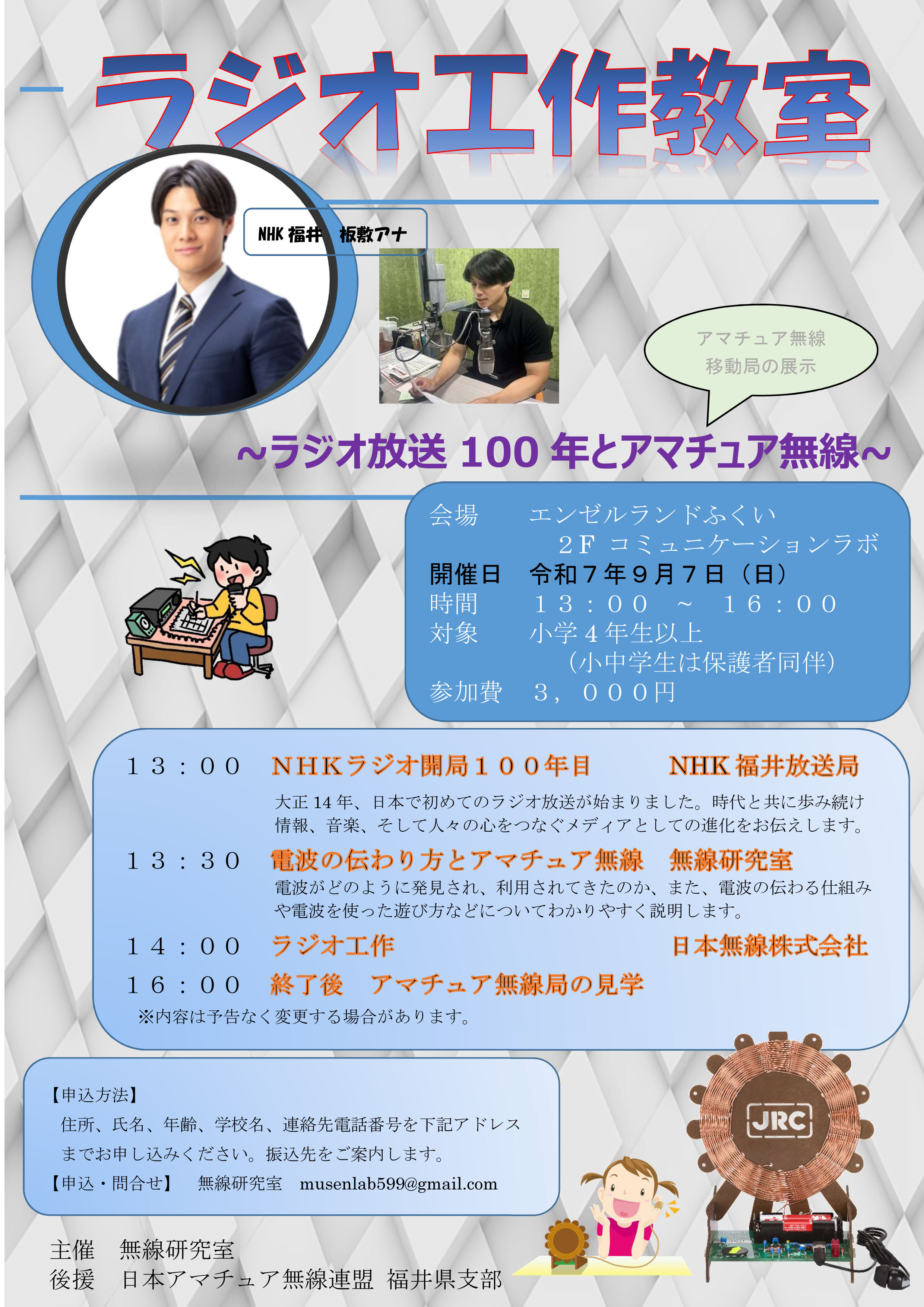- お申込み・お問い合せ:無線研究室 musenlab599@gmail.com