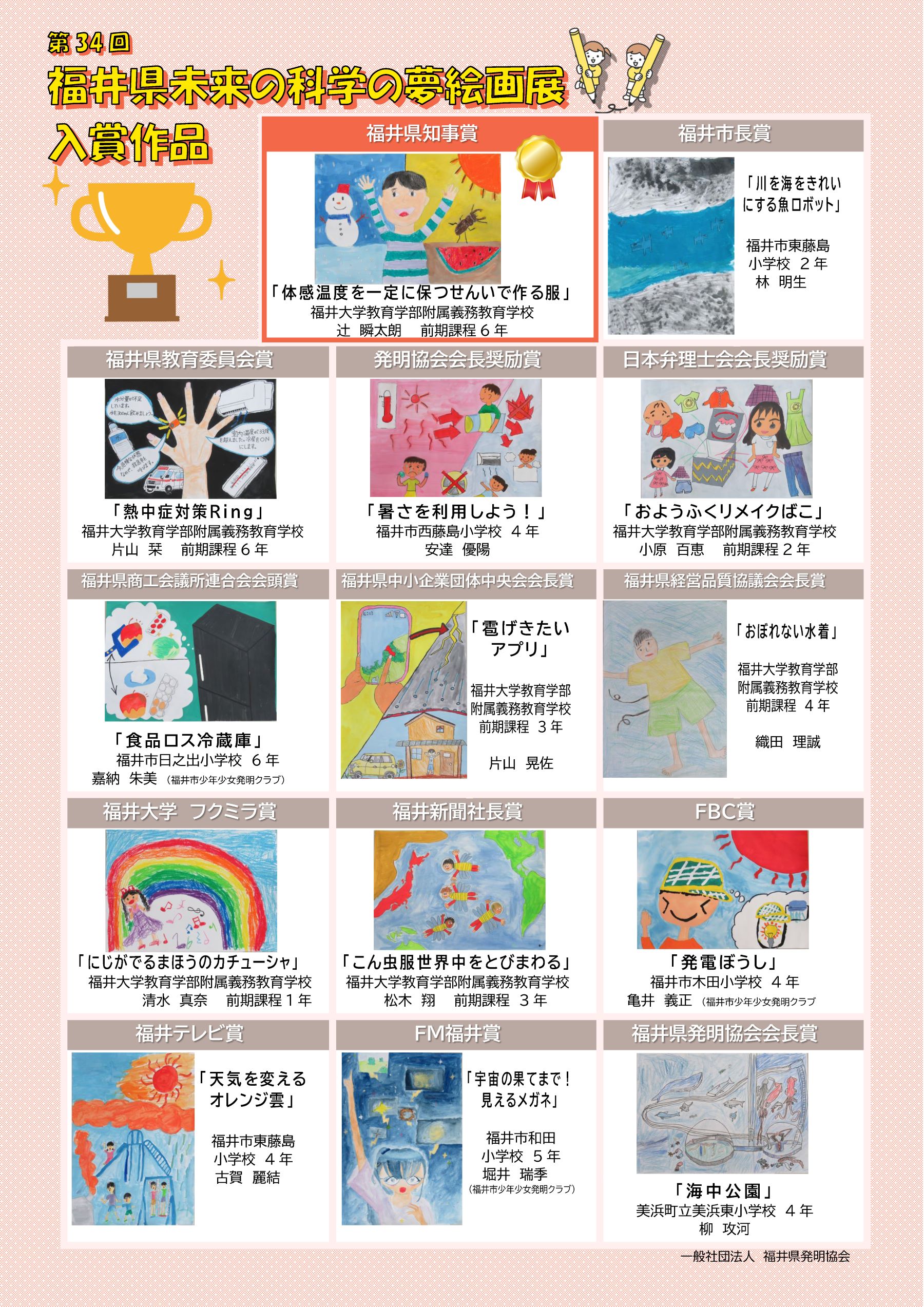 「第37回 福井県発明くふう展」「第34回 福井県未来の科学の夢絵画展」入賞作品展