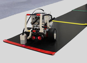 色のセンサーで、ロボットにいろいろな動きをさせながら走らせてみよう。
