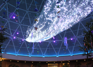 笹飾りなどで七夕をイメージした幻想的な雰囲気のなかで短冊を描いて星空に届けましょう。