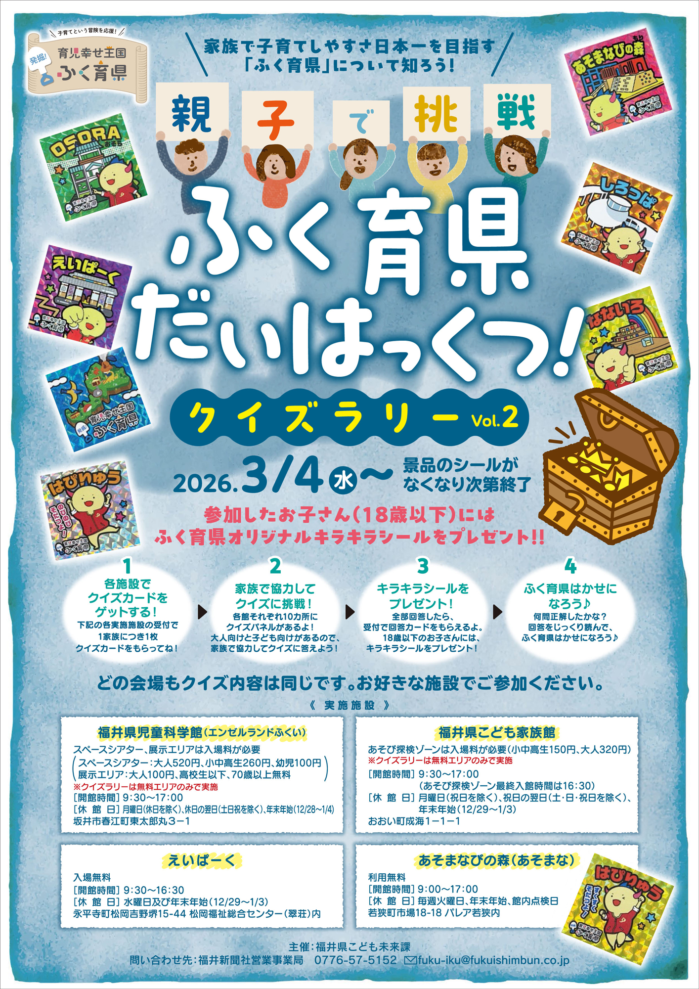 【受付不要】親子で挑戦!ふく育県 だいはっくつクイズラリーvol.2