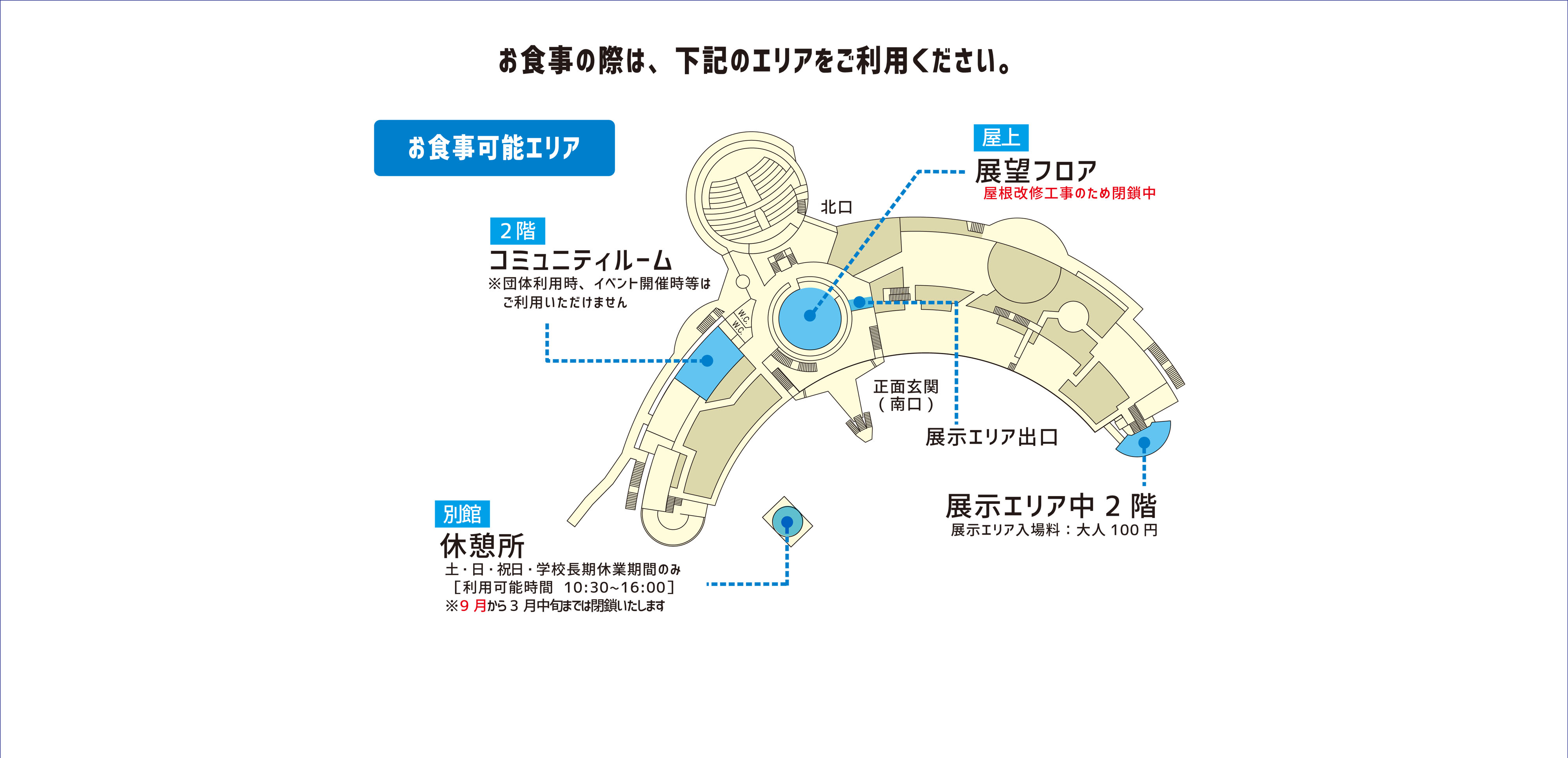 ・お食事は【お食事可能エリア】(クリックするとPDFが表示されます。)でお願いします。