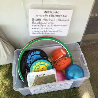 おしらせ屋外で使えるボールやフリスビーなどの貸し出しBOX「おもちゃばこ」を設置しました。
