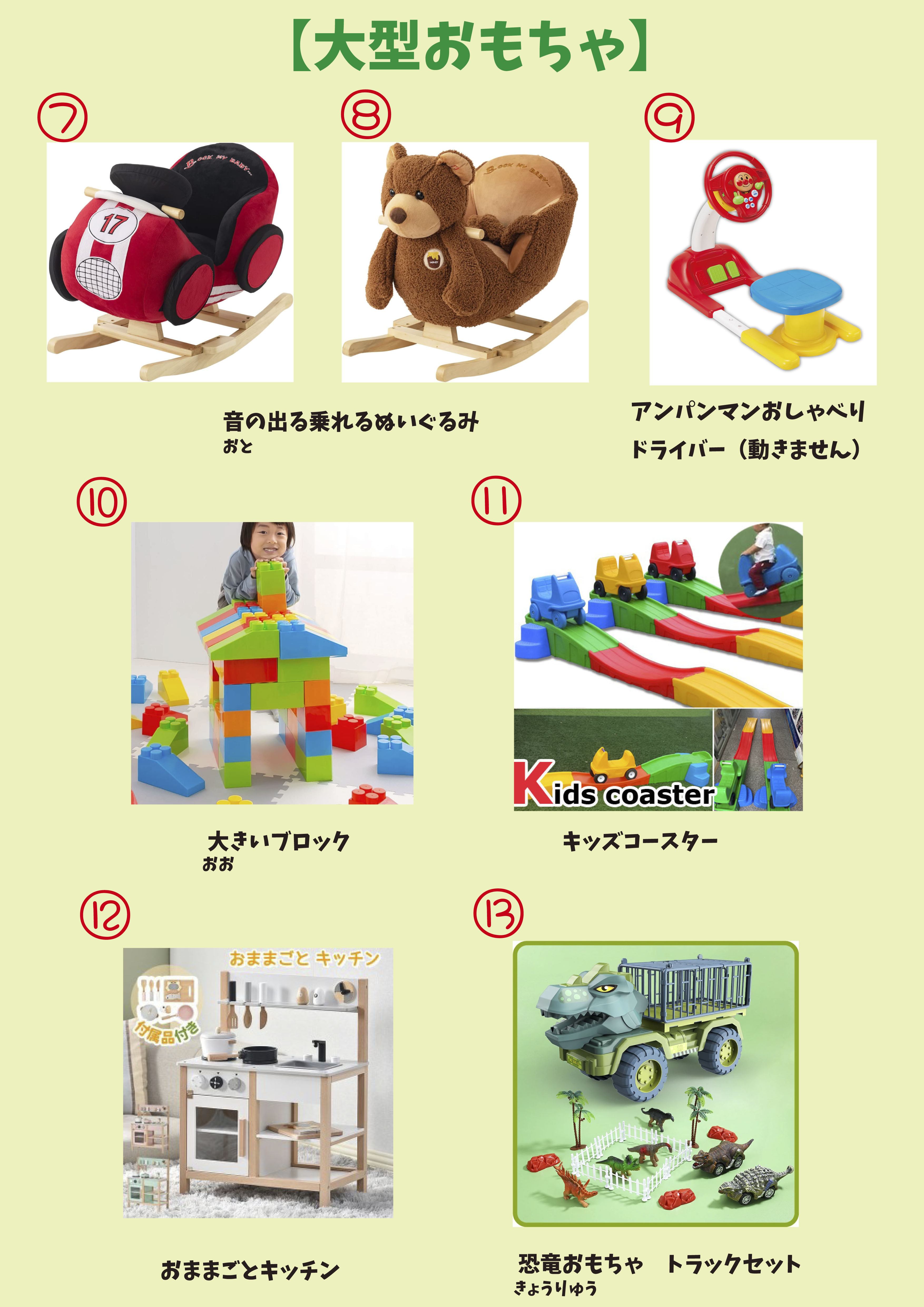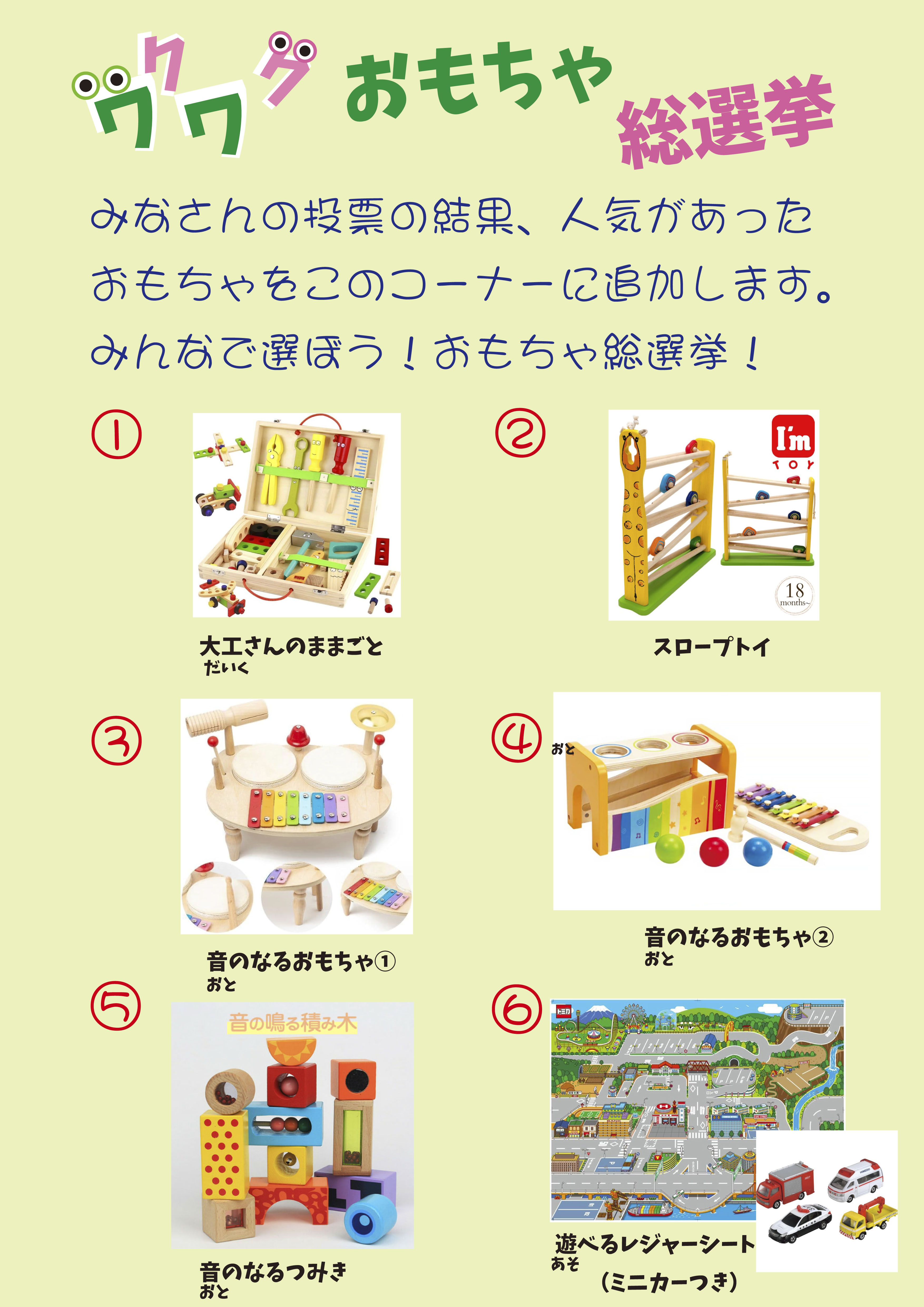 投票の結果、人気が高かったおもちゃを3月25日(火)に配置します!みんなでなかよくつかってね。