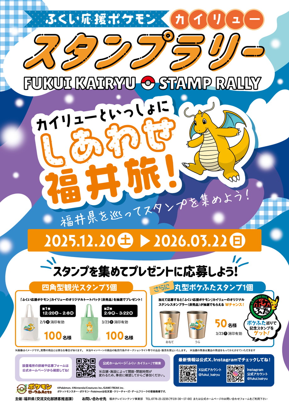NEW! 【12月20日(土)~】「ふくい応援ポケモン」カイリュースタンプラリー