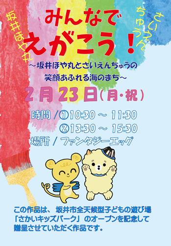 ※贈呈式は3月20日(金・祝)オープン日、さかいキッズパークで行います。